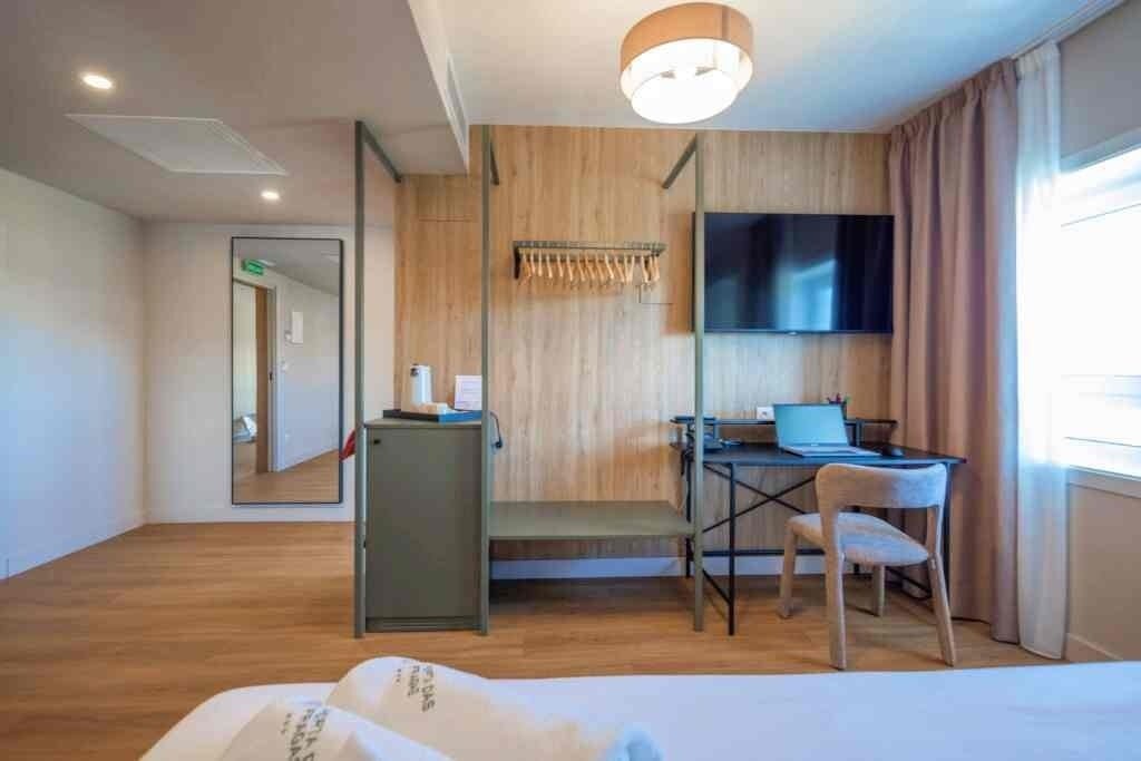 Las habitaciones dobles superiores del Hotel SNO Porta Da Fragas destacan por su amplitud y confort, siendo una opción ideal para quienes buscan un extra de espacio durante su estancia. Con 30 m², capacidad para dos huéspedes y la posibilidad de elegir entre cama King Size o dos camas individuales, ofrecen un entorno cómodo y versátil, perfecto también para viajar con un niño pequeño. Desde la habitación podrás disfrutar de agradables vistas a los jardines del hotel, que aportan luz y tranquilidad al espacio. Todas ellas cuentan con baño privado, aire acondicionado y wifi gratuito, además de un completo equipamiento que incluye televisión por cable, minibar, hervidor, caja fuerte, secador, artículos de tocador, bebida de cortesía y una cuidada carta de almohadas para un descanso totalmente personalizado.